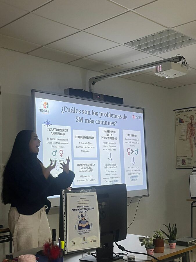 CHARLA PROINES SALUD MENTAL El pasado lunes tuvo lugar una charla-coloquio con las compañeras de Proines Salud Mental y financiada por la Diputación de Badajoz. Aprendimos mucho sobre cuidado y bienestar mental. 🧠✍🏼